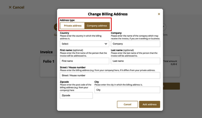 Optional: Change billing address / company address