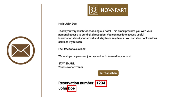 Die richtige Reservierungsnummer ist in der E-Mail mit Ihren Check-In Informationen angegeben und besteht in der Regel aus 4 bis 5 Ziffern.