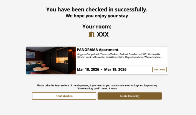 Alternatively, you can enter your reservation details at the check-in terminal and click “Encode Room Card.” Your room number will then be displayed.