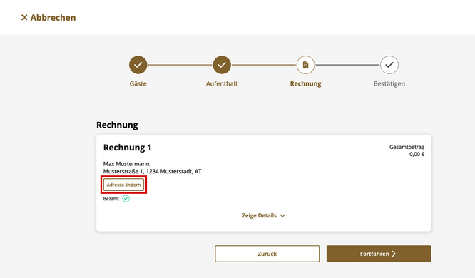Optional: Rechnungsadresse / Firmenanschrift ändern